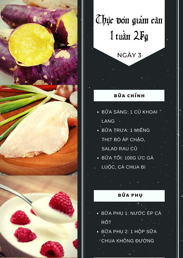 - Bữa tối: salad rau củ ức gà, 1 hộp sữa chua