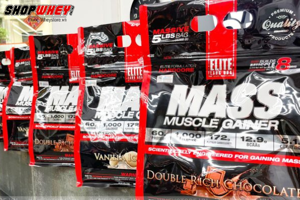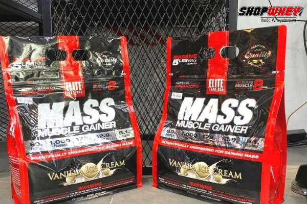 - EliteLab Mass Muscle Gainer 5lbs ở dạng bột mịn, dễ hòa tan trong nước, hương vị tự nhiên thơm ngon
