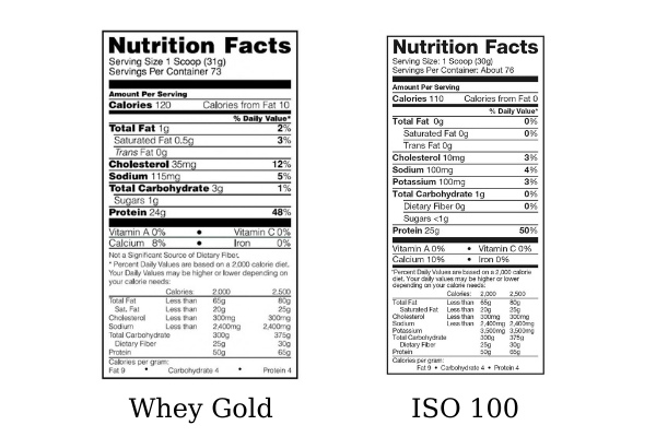 Như vậy, xét về hàm lượng protein, ISO 100 có phần nhỉnh hơn Whey Gold.