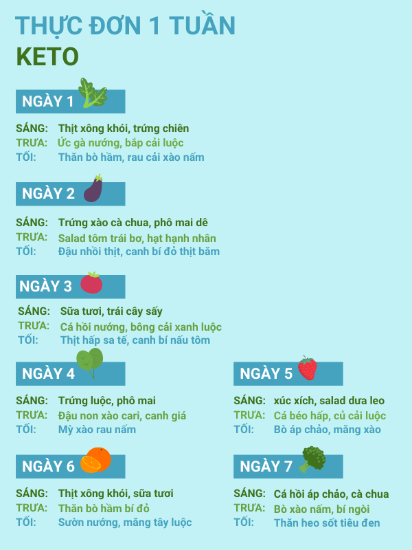 Thực đơn giảm cân Keto đòi hỏi bạn phải cắt giảm tối đa lượng tinh bột nạp vào. Và khá ngược đời, bạn sẽ phải giảm lượng rau và trái cây xuống. Nếu low carb cho phép bạn ăn 50 – 100 gram carb thì với keto, con số này giảm xuống dưới 50 gram. Một lượng rất ít tinh bột. Bạn cũng không thể ăn thoải mái đạm như low carb mà giới hạn protein trong keto là 20% tổng lượng calories nạp vào. Thay vào đó, bạn sẽ ăn tăng cường chất béo.
